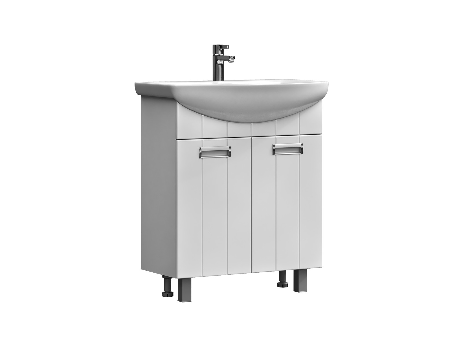 Оснащение: 2 дверцы; 1 полка ЛДСП; ручка врезная металлическая хромированная, опоры квадратные регулируемые.